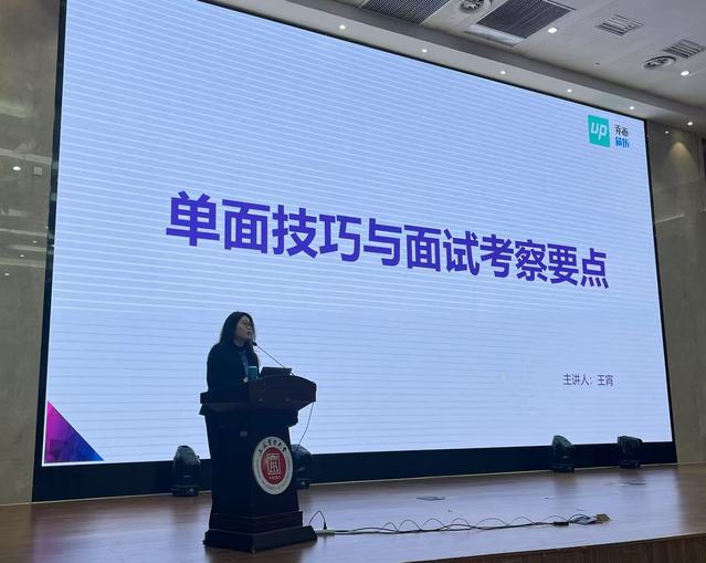 讲座以韩寒团队广告案例为切入点,生动类比面试中3-5分钟的高压应答场景,深度解析“快速传递个人价值”的核心逻辑。在自我介绍环节,王宵导师提出“自我-社会-团队”三维度法则,建议学生从个人特质、社会价值关联、团队协作能力等层面立体呈现竞争力。