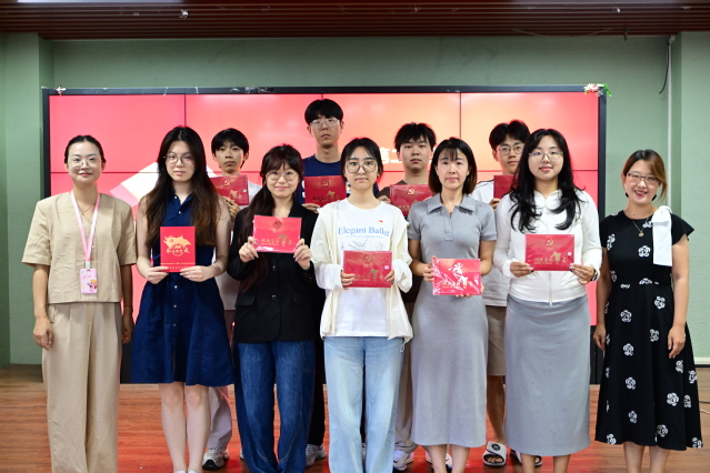 首先,在新发展党员入党宣誓环节,周颖宣读新发展党员名单,孟延新为新党员颁发贺卡、佩戴党徽。在学生党员吴继慧领誓下,全体新党员面向党旗庄严宣誓,铿锵誓言响彻会场。宣誓完毕后,预备党员代表姚馨传达了全体新发展党员的心声,她表示:“从今天起,我们将以党员标准严格要求自己,在学习生活中践行誓言,让青春在奉献中闪光。”