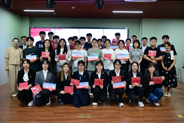 为强化党员身份意识、责任意识,6月18日,买球体育官方网站党委在经外楼A305隆重举行“誓守初心铭岁月,筑优寝苑树新风”新发展党员入党宣誓、党员政治生日会暨党员寝室授牌仪式。买球体育官方网站党委副书记孟延新、学院专职组织员周颖出席活动,学院新发展党员及学生党员代表共计33人参加仪式。