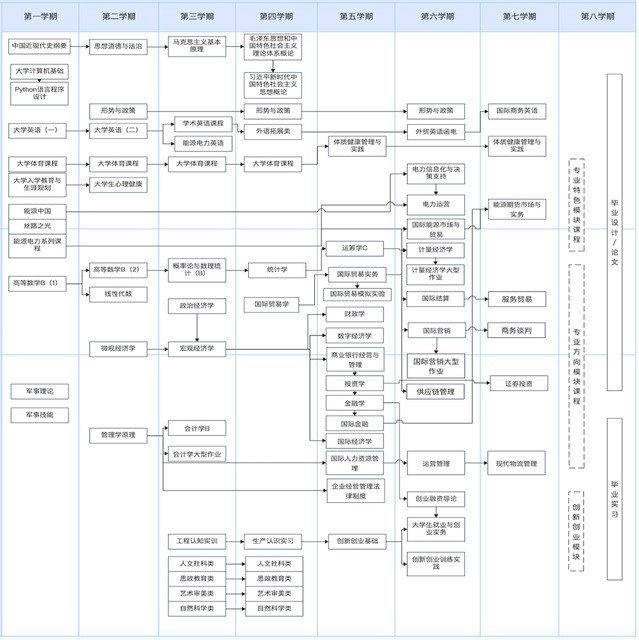 本专业旨在培养具有良好的思想品德和道德修养、自觉践行社会主义核心价值观;具有扎实的国际经济与贸易基础知识和基本理论,同时掌握一定的金融知识和能源电力知识;熟练掌握现代经济分析方法,熟悉国际经贸领域国际惯例、通行规则和操作实践;具有开阔的国际视野、较强的外语应用能力、计算机操作能力;富有创新创业精神,协调沟通能力较强的应用型、复合型人才。