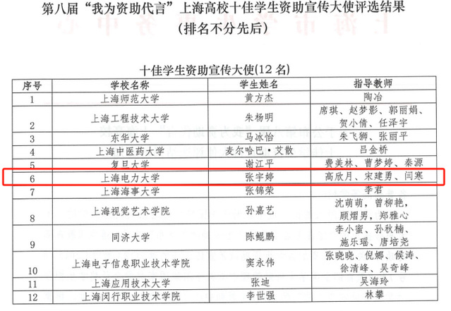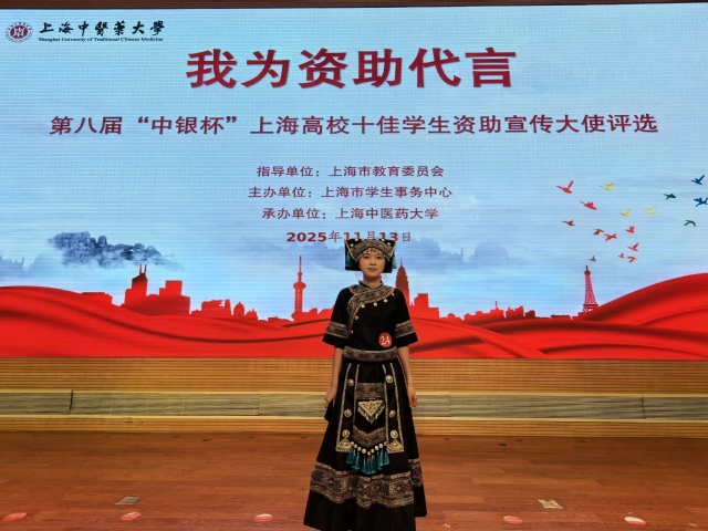 在最终的评选现场,张宇婷以真挚的情感、流畅的表述和自信沉稳的舞台风采,生动讲述了自己作为资助政策受益者与宣传者的心路历程,完美展现了新时代大学生自强不息、感恩奋进的担当,最终从众多优秀参赛者中脱颖而出,成功获评“上海市十佳资助宣传大使”。
