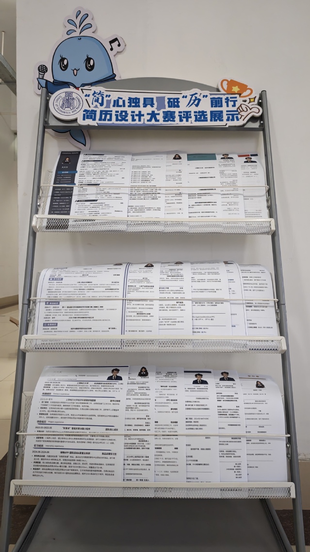 为深化以赛促学成效,学院在公共区域精心设置了“优秀简历展示角”,将获奖作品隐去个人信息后制作成可视化模板长期陈列,方便学生随时参考借鉴。展示角不仅呈现了排版设计上的亮点,更通过模块化解析引导学生理解如何有针对性地突出专业优势、量化实践成果、优化表达逻辑。这一举措使赛事成果转化为可持续使用的学习资源,推动简历撰写从单一竞赛项目延伸为常态化、自主化的职业能力训练环节,深受学生欢迎。