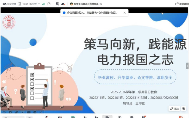本次新学期首日教育活动实现了全院各年级、各专业的全覆盖,主题鲜明、内容精准、形式多样,有效引导全院学生迅速从假期状态切换到校园学习生活状态。下一步,学院将以本次首日教育为起点,做好教育成果的深化与延伸引导学生将个人理想融入时代发展,努力成长为能够服务国家能源战略、引领行业发展的应用型、复合型人才,以青春之力践行能源电力报国之志。