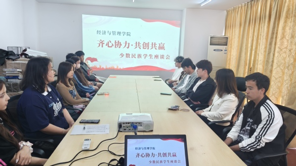 在互动交流环节,各少数民族学生代表依次进行了自我介绍,他们从学习心得、生活感悟、发展期望等不同角度分享了在校期间的收获与成长,并就目前遇到的难题和困惑与同学、老师们进行了分享。孟延新与阿布都如苏力从学业规划、实习实践、饮食生活等方面针对性地进行了解答与指导,鼓励同学们克服困难、努力学习,为自我成长成才、民族地区发展以及祖国繁荣昌盛而砥砺奋斗。