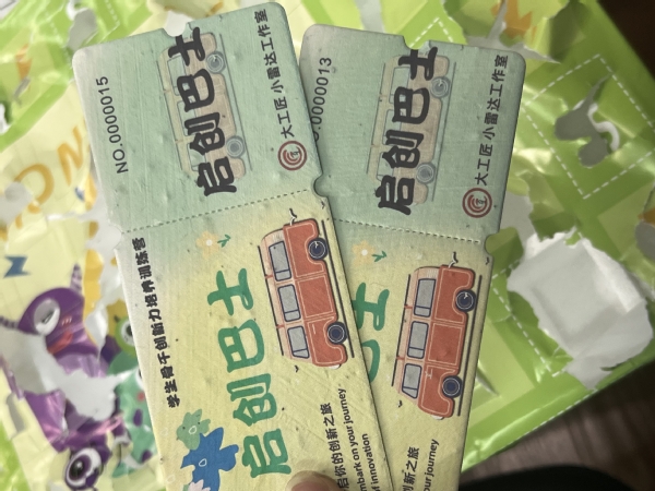 进场仪式签到中,工作室融合年轻人喜爱的抽盲盒方式,进行签到分组,每位签到成功的同学可领取一张创新种子车票。全新的体验,赢得了同学们一致好评。
