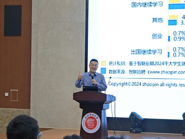 塑造未来蓝图,规划职业前程。顾子勋指出,求职并非一件孤立的事情,需要同学们充分整合利用各类资源,如学校就业指导中心、校友网络、招聘网站等,获取更多就业信息。同时,他也强调了个人品牌建设的重要性,鼓励同学们通过实习、社会实践等方式积累经验,提升个人能力及综合素质。在求职过程中,通过丰富实习经历等手段包装美化简历,展示个人优势与特点,提高求职成功率。