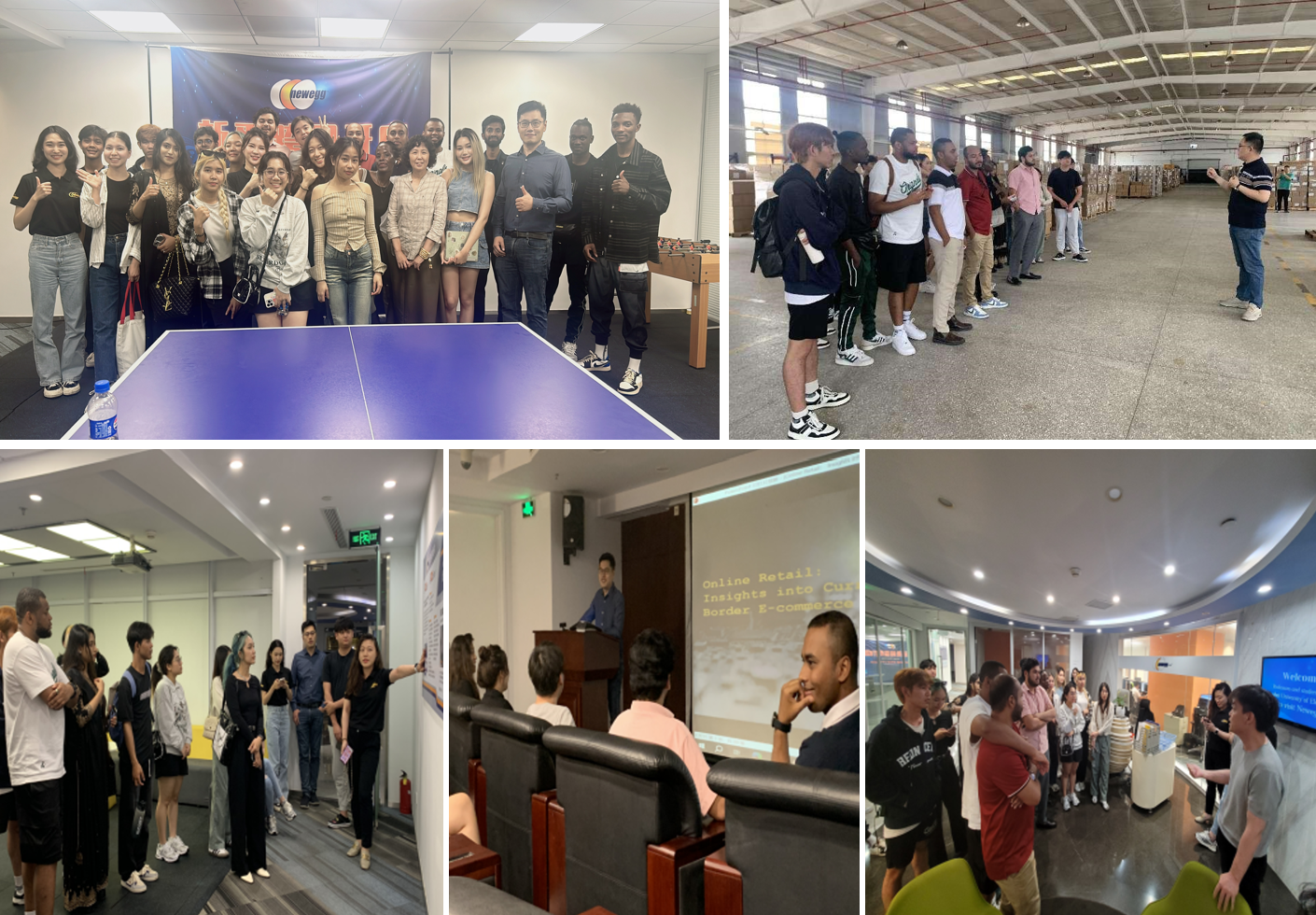 当天上午,学生们在老师带领下走进松江综合保税区,了解关于保税区进出口贸易代理业务和保税仓储相关任务。上海金陵国际物流有限公司总经理乐烨、副总经理刘杰等相关领导介绍了公司业务情况及松江保税区情况、以及保税区内仓库备品备件、条码管理,拣货策略配置,入库质检等高端物流服务情况。下午,全体师生来到新蛋企业上海总部,参观企业并了解企业文化。新蛋集团中国区市场总监陈博,供应链经理颜瓅琨分别开展了《线上零售:跨境电商的现状与发展》、《跨境电商供应商链及物流体系》2个讲座,现场互动热烈。实习活动给学生留下了深刻的印象,留学生贾辉同学表示:我衷心感谢这次实习项目的组织者提供了如此宝贵的学习经验,特别感谢实习企业工程师富有见地的授课和指导,这次实习对我的职业抱负起到了重要作用。梦露同学表示,衷心感谢中国仓储与配送协会(CAWD)和Newegg提供了这个宝贵的认知实习机会,在此期间获得的经验和知识对专业学习起到了重要的引导作用,这次实习不仅提供了实践经验,也使我们对国际贸易的未来和机遇充满信心。