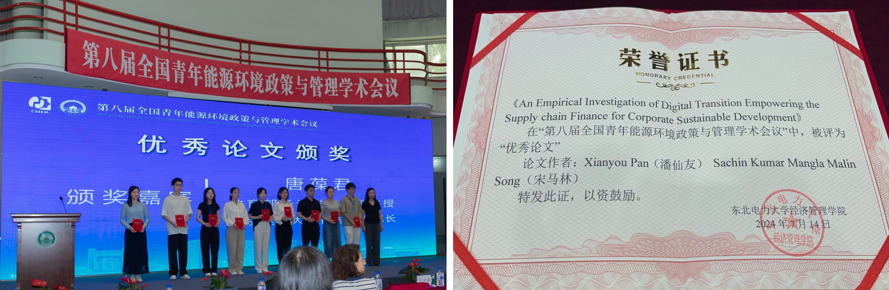 7月13日至14日,由中国“双法”研究会能源经济与管理研究分会、东北电力大学联合主办的第八届全国青年能源环境政策与管理学术会议在东北电力大学召开,买球官网教师潘仙友及多名硕士研究生应邀参加会议并在平行论坛环节做主旨演讲。