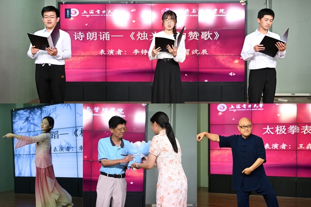 在“师者·榜样”表彰环节中,学院分别表彰了在师资建设、人才培养、科学研究、党务行政等工作中取得突出成绩的先进集体和个人,学院领导向获奖集体和个人颁奖。学生们以诗朗诵《烛光里的赞歌》、舞蹈《相许》向教师们致以最崇高的敬意、传递最美好的祝福。教师代表王森波以一套太极拳表演将气氛烘托至高潮。