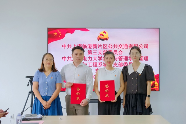 为进一步落实新时代党建工作的新要求,促进党建与业务发展深度融合,创新党建联学共建新形式,9月25日,买球体育官方网站管理科学与工程系学生党支部与上海临港新片区公共交通有限公司第三党支部在临港集卡中心党群服务站开展了党建联建交流会,会上双方党支部签订党建共建协议书。上海临港新片区公共交通有限公司第三党支部书记梁鸽峰、工会主席支部宣传委员曹依梅、买球体育官方网站专职组织员周颖、党支部书记王卲萱以及双方支部党员参加了交流会。