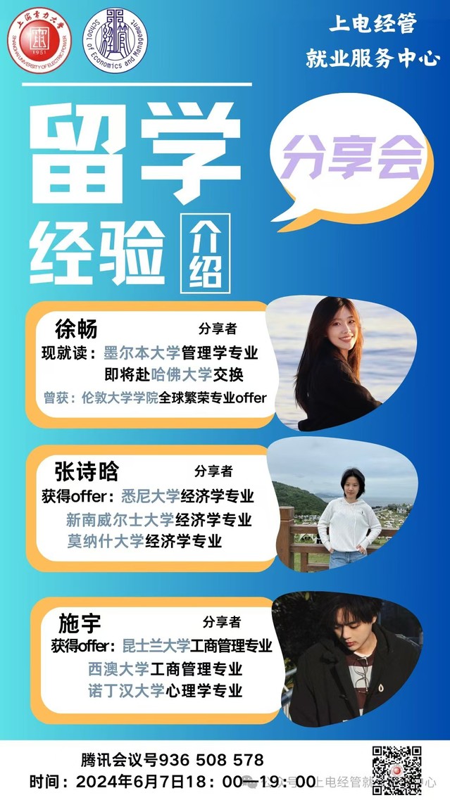 为帮助经管学子更好地规划留学之路,买球体育官方网站于6月7日举办了一场主题为“职引未来”的留学生经验分享会。此次活动吸引了众多有志于留学的学生,共同探讨留学规划、文书准备、实习与科研方向等关键问题。活动由买球体育官方网站辅导员展晴晴主持。