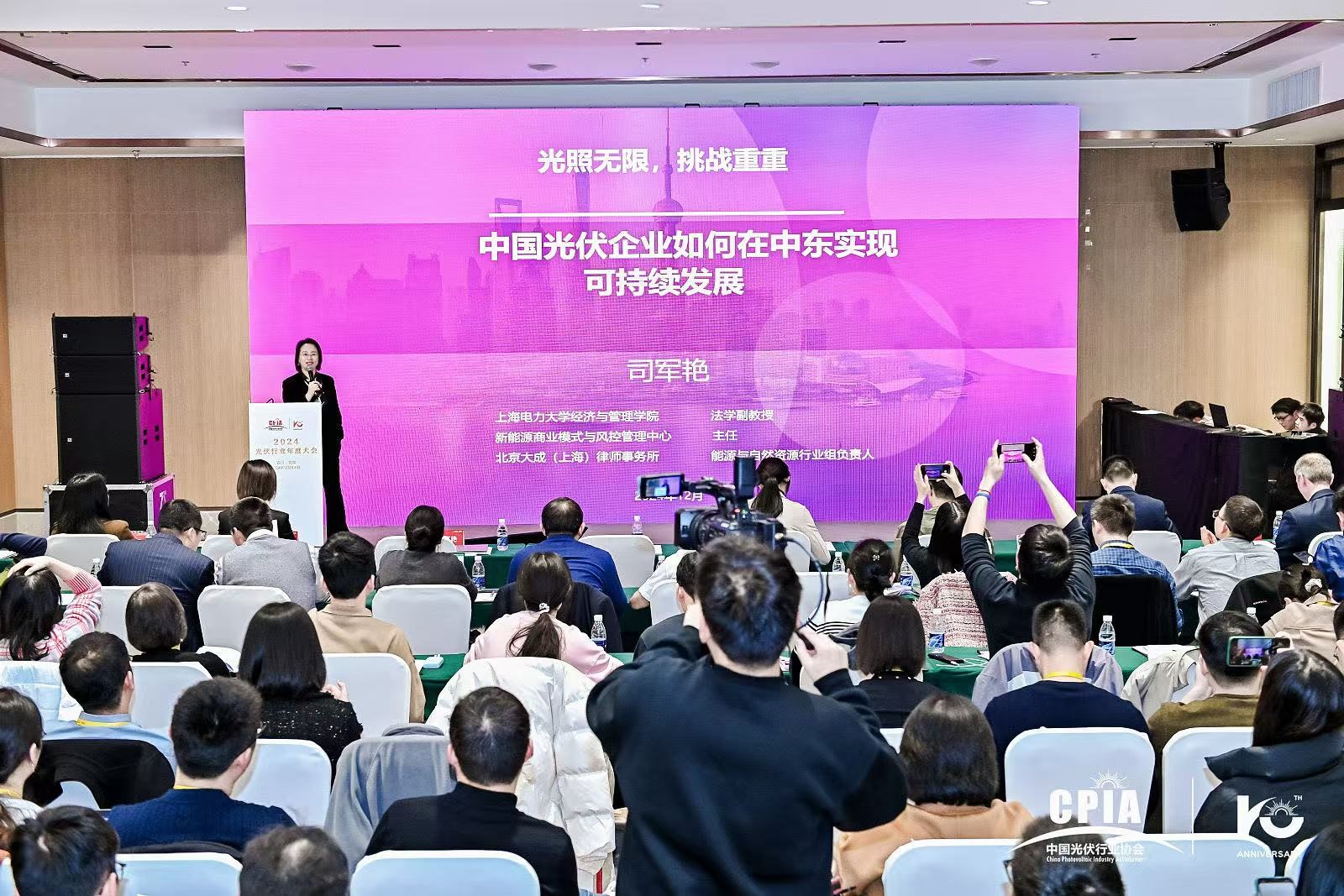 随着全球能源转型的加速,中东地区凭借其得天独厚的光照资源和积极的能源政策,正逐渐成为中国光伏企业出海的新热点。2024年12月5日,由中国光伏行业协会主办的“2024光伏行业年度大会”在四川省宜宾市举行。买球体育官方网站司军艳副教授受邀在大会“海外光伏市场分析及投资机遇研讨会”中作“光照无限,挑战重重—中国企业如何在中东实现可持续发展”主题发言。