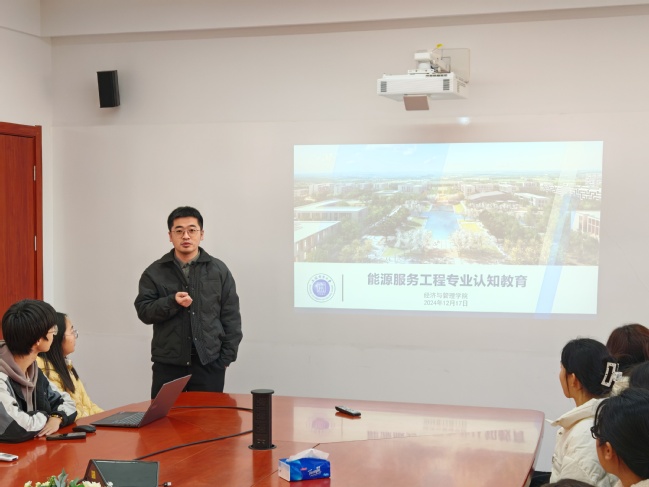 在能源服务工程专业认知教育中,专业教师潘仙友围绕该专业交叉复合性的特质,深入阐述了能源服务工程专业的培养方案、投入资源及目标人才培养等关键信息。并细致解答了在场学生关于考研路径选择、职业发展方向等疑问,极大地增强了学生们成为复合型综合能源服务人才的信心与决心。